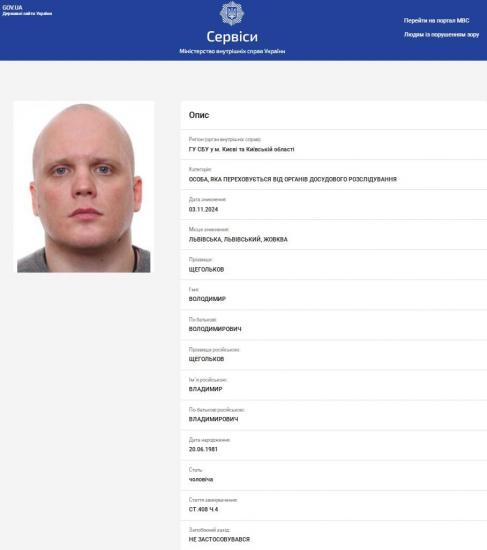 Уже через 2 дня Щегольков исчез из пункта приема особого состава, который временно расположен на территории Жолковского городского совета Львовской области. После чего ему объявили подозрение и объявили в розыск.